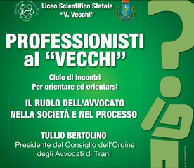 Quarto appuntamento per il ciclo "Professionisti al Vecchi", organizzato dal Liceo Scientifico tranese in favore degli studenti delle quinte classi, alle prese con la delicata scelta del percorso universitario da intraprendere, nonché in favore dell'intera comunità del territorio.