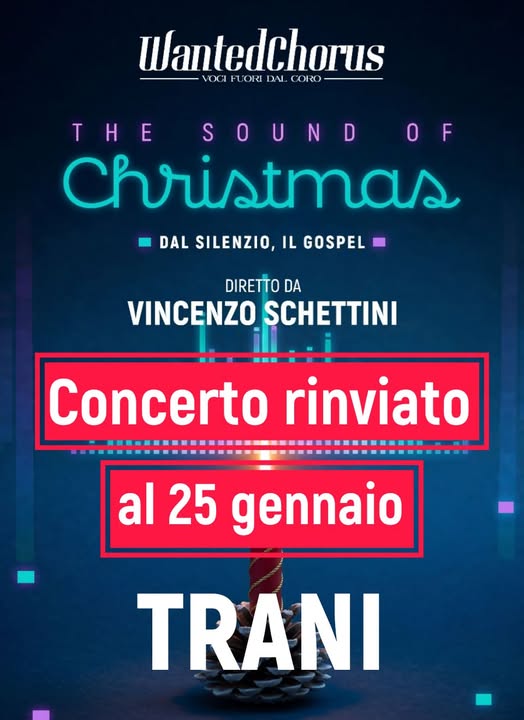 Il concerto con Vincenzo Schettini e i Wanted Gospel Chorus, inizialmente previsto per il giorno dell’epifania, il 6 gennaio, è stato rinviato al 25 gennaio. Il concerto, molto atteso, rappresenta uno dei momenti musicali più significativi della stagione e promette di regalare emozioni e grande partecipazione. Nei prossimi giorni verranno comunicati il luogo e ulteriori dettagli organizzativi.