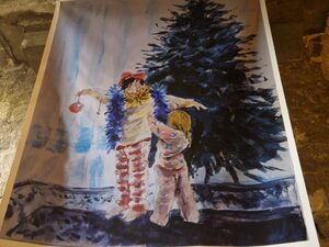Nella tela “Il Natale che porto con me” si vede rappresentata quella che è la vera essenza della festa. L’artista Serena Milella ha raffigurato una tavola non ancora del tutto spoglia e intorno familiari intenti a praticare un gioco con le carte napoletane. In primo piano, sono illustrate due figure nere di spalle e non visibili. La tenerezza del quadro risiede, però, nelle figure retrostanti, un nonno e la sua nipotina; i due, felici, giocano spensierati. Da qui si evince il momento speciale provato dall’artista: la bambina ancora non lo sa, ma rievocherà quel ricordo insistentemente con un una goccia di felicità e rammarico. Significato simile è raffigurato in “Ricordi” di Francesca Netti: due bambini, forse cugini o fratelli, scherzano e si divertono fra loro mentre decorano l’albero natalizio.
