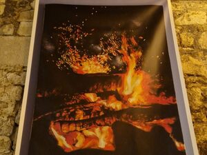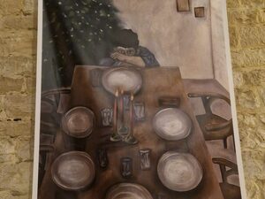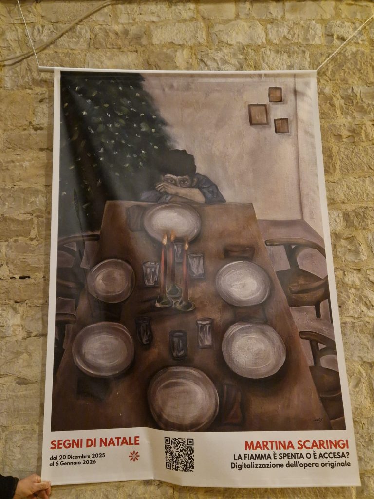 Questo è il vero spirito natalizio, quegli elementi che tutti noi diamo per scontato ma che in realtà non lo sono. Una totale contrapposizione è, infatti, la raffigurazione di Martina Scaringi: “La fiamma è spenta o è accesa?”. La tavola è imbandita, le candele sono accese, l’albero è decorato, ma manca qualcosa… C’è un solo bambino seduto al tavolo, sull’orlo del pianto; sembra avvolto da tristezza e dolore.
