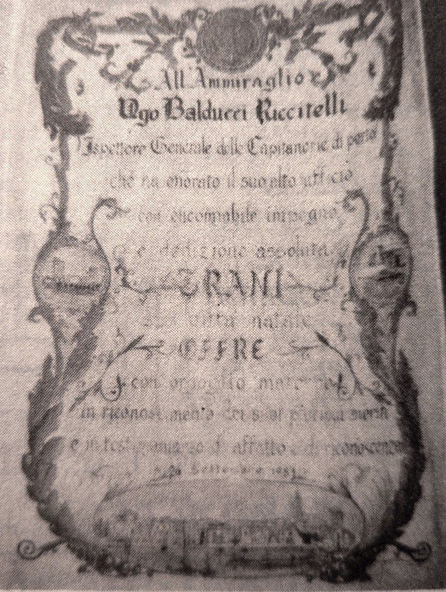 STORIA: Ugo Balducci Riccitelli nasce a Trani il 28/08/1917. Figlio del comandante Augusto, per oltre quarant’anni capo del locale porto, Ugo a Trani si forma sino al diploma che consegue presso il Liceo Classico. Iscritto a Bari presso la facoltà di Giurisprudenza, si avvia in una carriera giuridica ed amministrativa non indifferente così da immettersi nel ramo dell’Accademia navale, a Livorno. Qui vi diventa Ufficiale, ricoprendo il governo di alcuni fra i porti maggiori dell’Adriatico e del Tirreno, tra cui Rimini, Ancona e Pescara. Successivamente, si iscrive al Centro Alti Studi Militari, ramo delle Forze Armate in cui gli iscritti subiscono una meticolosa selezione accademica. Il 26/09/1981 è ricevuto al Comune dal Sindaco Francesco De Palma per il conferimento di una medaglia d’oro e di un’artistica pergamena realizzata dal prof. Aurelio Carella. Muore il 20/04/2004 a Foggia lasciando un vivo ricordo verso coloro che decidono di dedicare la propria vita al servizio dello Stato.