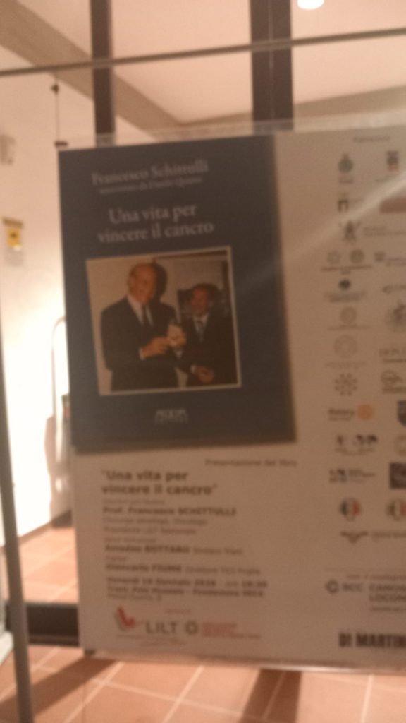 “Una vita per vincere il cancro” non è solo il titolo di un libro, ma un progetto di vita. Nel volume il Prof. Francesco Schittulli offre al lettore un mosaico di programmi, volontà, propositi, proposte, constatazioni, diario e confessioni, frutto di una vita spesa nella ricerca, nella medicina e nella sensibilizzazione contro il cancro.