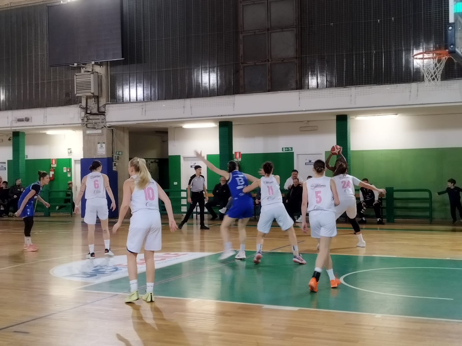 L’avvio è equilibrato ma condizionato da numerosi errori da entrambe le parti. Il primo quarto si chiude sul 9-10, mentre nel secondo periodo la Dinamo Taranto approfitta delle difficoltà offensive della Juve Trani, che segna appena cinque punti nei dieci minuti centrali e va all’intervallo lungo sotto 14-25. In questa fase pesa anche l’uscita temporanea di Lea Zsofia Orosz per un problema alla caviglia, rientrata comunque poco dopo.