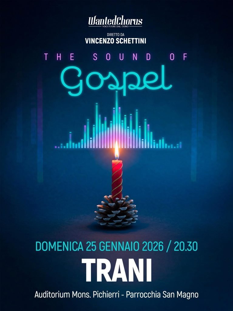 Domenica 25 gennaio 2026, alle ore 20.30, Trani ospiterà The Sound of Gospel, il concerto che vedrà protagonisti i Wanted Chorus, diretti da Vincenzo Schettini. L’evento si terrà presso l’Auditorium Mons. Pichierri – Parrocchia San Magno, e si preannuncia come uno degli appuntamenti musicali più attesi della stagione.