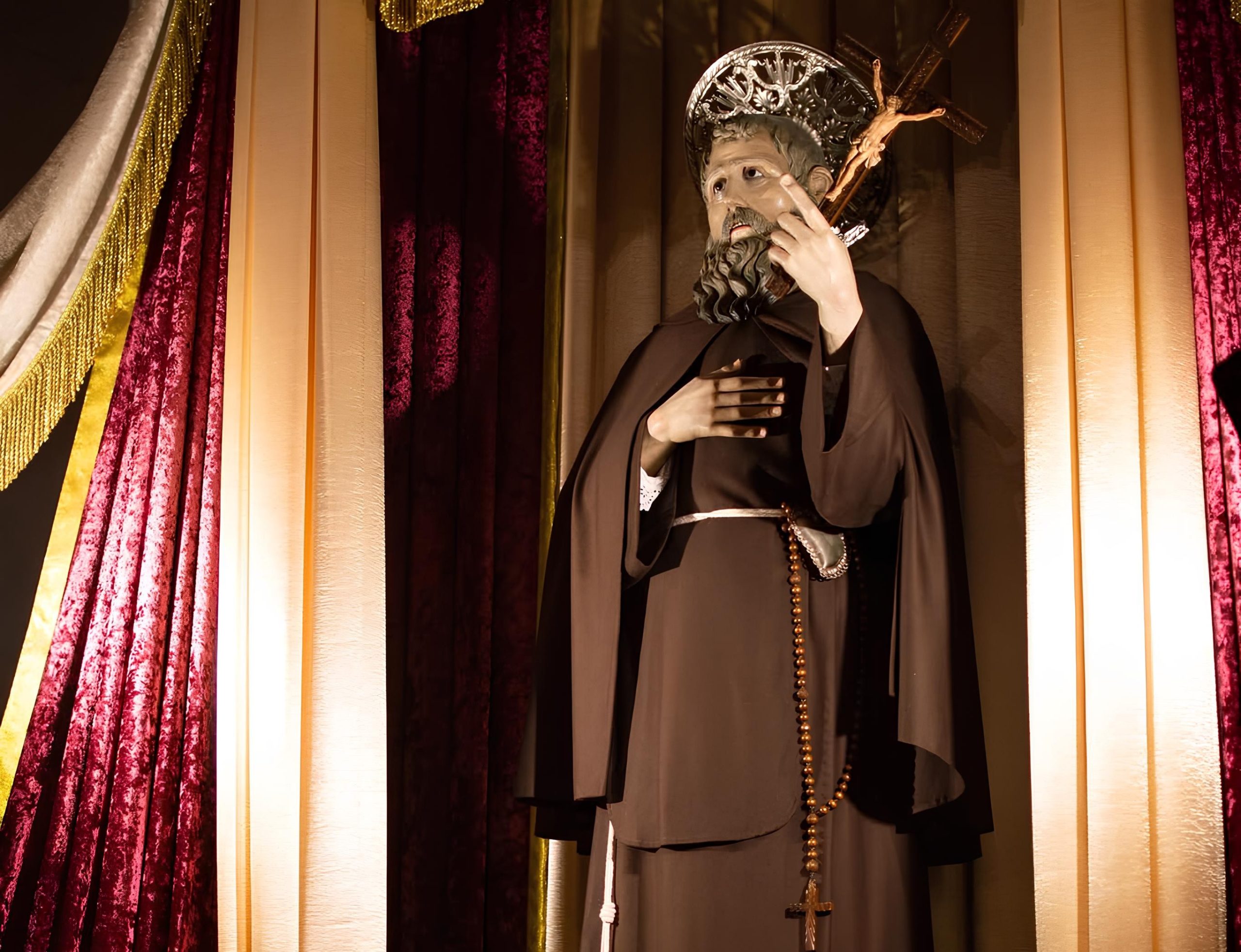 Così, nella Chiesa di S. Giuseppe si coltiva una fervida devozione al Santo che oggi si festeggia. Ne sono un'importante testimonianza gli ex-voto che adornano l'effige lignea, che quasi interamente ricoprono il sacco che ricorda la scelta eremitica compiuta dal medico durante la sua vita. Un occhio particolare è volto a Gesù crocifisso che il santo sorregge nella mano sinistra, come ad indicare l'unico esempio di vita per i cristiani, che talvolta porta al martirio del corpo.