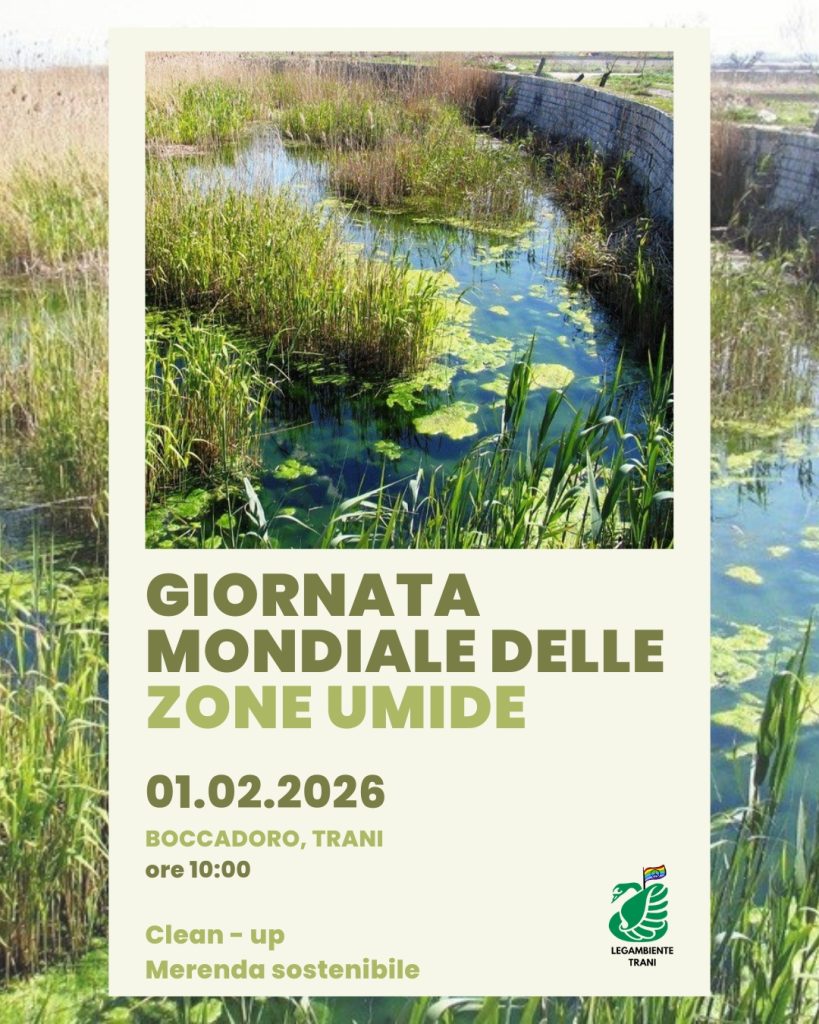 In occasione della Giornata Mondiale delle Zone Umide, la città di Trani si mobilita per valorizzare uno dei suoi tesori naturali più preziosi. Domenica 1 febbraio, a partire dalle ore 10:00, l’area di Boccadoro ospiterà una mattinata dedicata alla sensibilizzazione ambientale e alla cura del territorio.