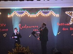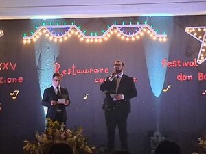 Il Festival Don Bosco non sarebbe possibile senza una rete di cura concreta. I ringraziamenti rivolti agli organizzatori, ai volontari, alla comunità parrocchiale, agli enti sostenitori, al presidio sanitario e alla giuria non sono stati una formalità, ma il riconoscimento di uno stile: quello di una comunità che educa insieme. Anche il momento della premiazione, accompagnato da musiche simboliche, ha evitato la logica competitiva fine a sé stessa, per restituire valore all’impegno, al coraggio di esporsi, alla crescita personale. In questo senso, la gara diventa cammino, e il palco luogo di fiducia. E in questo racconto corale non poteva mancare un gesto dal forte valore simbolico: anche i parroci della comunità, don Davide e don Gianni, hanno scelto di mettersi in gioco salendo sul palco con il brano “Che vita meravigliosa”. Non una semplice esibizione, ma una testimonianza concreta di vicinanza e corresponsabilità educativa. La loro presenza ha ricordato che “restaurare con cura” riguarda tutti, pastori e comunità, e che la bellezza della vita – pur attraversata da fatiche, dubbi e fragilità – merita di essere cantata insieme.