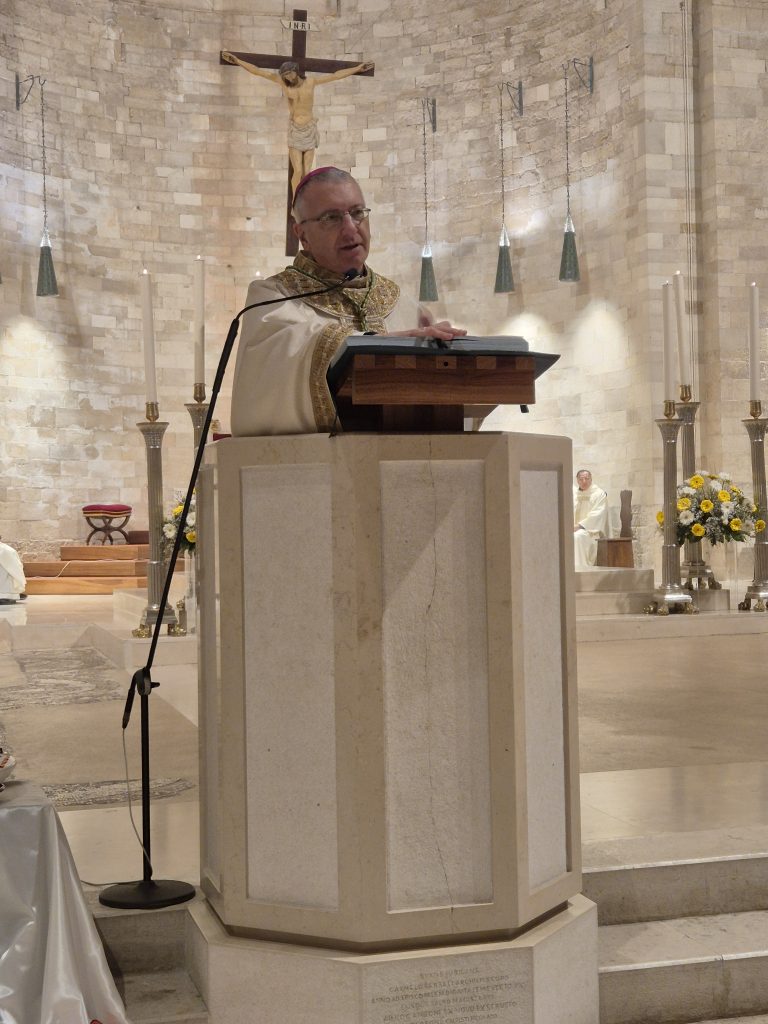 Al termine della celebrazione ha preso la parola suor Mimma Scalera, delegata episcopale per la vita consacrata, che ha proferito le seguenti parole: «A quaranta giorni dalla nascita del Bambino di Betlemme, la Chiesa oggi celebra la festa della luce. Gesù è presentato al Tempio e offerto al Signore. Anna e Simeone attendono e accolgono questa luce di Dio che è Gesù. E’ questo incontro luminoso di Gesù con l’umanità che oggi è ferita e oppressa dalla violenza, dalla guerra, da povertà, da migrazioni forzate e da tensioni che deve spingerci ad illuminare il mondo. Noi come consacrate e consacrati siamo chiamati a restare accanto a questa umanità ferita, nei luoghi dove il Vangelo ci spinge ad andare per generare il bene ed operare per la pace. Tutto ciò può realizzarsi se operiamo profeticamente senza timore di offrirsi sempre per il Signore. Come consacrati e consacrate siamo chiamati ad essere pronti ad accogliere le sfide di questa società del post-moderno a cominciare da quell’intelligenza artificiale che sta dietro l’angolo. Lo dobbiamo fare camminando insieme con la diversità dei nostri carismi e delle vocazioni per costruire nuove progettualità di evangelizzazione. Senza dimenticare che è su “noi” che si giocherà la ministerialità ecclesiale del futuro, secondo lo stile sinodale per essere sentinelle che vegliano nella notte e attendono l’aurora. Ringraziamo lei, Ec.za, perché nelle sue scelte pastorali di questa Chiesa diocesana ci sta educando ad essere popolo di Dio, in cui la vita consacrata si impegna ad offrire quel contributo necessario per l’evangelizzazione espresso specialmente nell’ambito educativo e nel servizio verso i poveri. Alla Vergine Santissima, donna di luce, chiediamo di accompagnarci in tutti i nostri passi, per essere anche noi luce del mondo».
