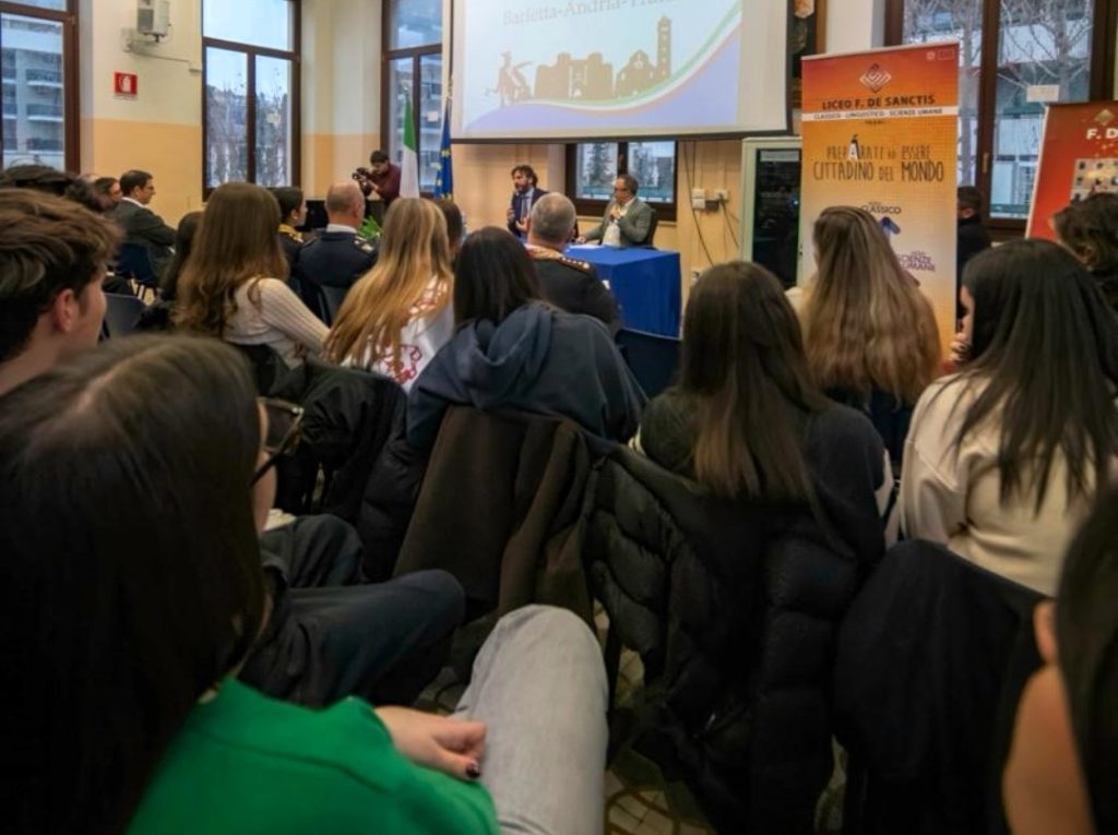 All’iniziativa hanno preso parte anche l’Assessore alla Polizia Locale e Viabilità della Città di Trani, Avv. Cecilia Di Lernia, e il Prof. Domenico Parente, che hanno espresso apprezzamento per la disponibilità del Questore della BAT a condividere la propria esperienza professionale, offrendo agli studenti spunti di riflessione utili per il proseguimento del loro percorso di crescita personale e formativa.
