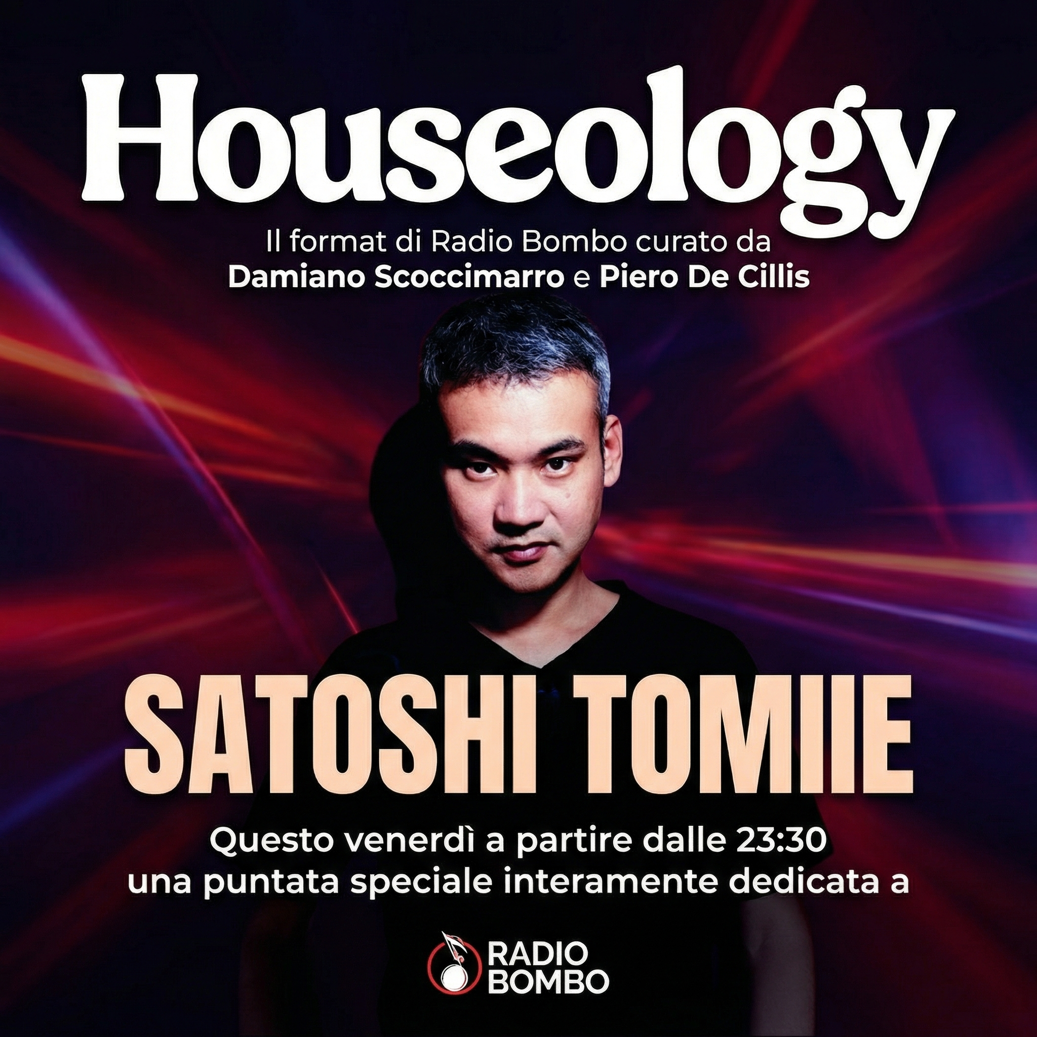 Nel panorama radiofonico italiano dedicato alla musica elettronica, Houseology continua a distinguersi come uno degli spazi più autorevoli e consapevoli nel raccontare la cultura house. Il format, curato da Damiano Scoccimarro e Piero De Cillis, torna questo venerdì a partire dalle 23:30 su Radio Bombo con una puntata speciale interamente dedicata a una figura cardine della storia del genere: Satoshi Tomiie.