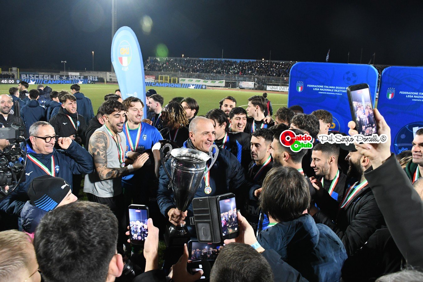 Al di là delle polemiche su un gesto inopportuno a fine partita, possiamo dire che è un giusto premio per la squadra biscegliese e per il duro lavoro svolto in questi ultimi anni con Di Meo (e da Di Meo), un personaggio certamente sanguigno ma altrettanto schietto e sincero, ma soprattutto grande conoscitore di calcio e capace di trasferire ai “suoi ragazzi” tutta la sua determinazione. La squadra nerazzurra stellata della città limitrofa prenderà ora parte alla fase nazionale del torneo insieme alle altre 18 vincitrici dei trofei regionali, con in palio un posto in D; un’ulteriore possibilità, oltre a quella di accedervi direttamente vincendo il campionato.