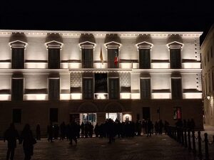 Il nuovo sistema di illuminazione artistica, concepito, finanziato e realizzato dalla Fondazione S.E.C.A. quale complemento essenziale all'intervento architettonico, è stato calibrato in stretta osservanza dell'equilibrio cromatico che definisce Piazza Duomo, rivelando con misurata intensità la volumetria del Palazzo. Il momento clou della serata è stato l'accensione della nuova illuminazione artistica: l'edificio ha mutato natura, da presenza silenziosa si è trasformato in faro culturale, proiettato verso l'Adriatico. Il progetto luminoso, restituisce al Palazzo una presenza viva offrendo a residenti e visitatori l'opportunità di riscoprirlo da una prospettiva nuova ma rispettosa. Ciò che emerge con forza è il valore di un progetto culturale integrato, in cui il restauro architettonico non è fine a sé stesso, ma parte di una visione più ampia.