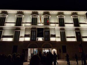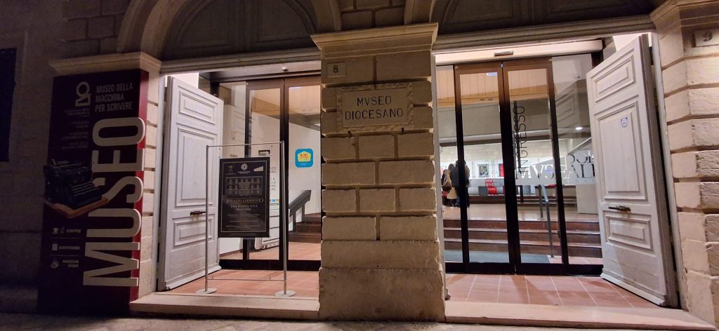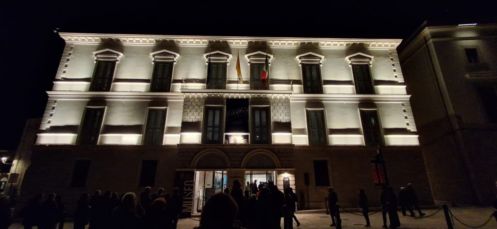 La serata, prima dell'accensione dell'illuminazione artistica, ha preso avvio con una visita guidata che ha consentito ai numerosi partecipanti di attraversare gli spazi del Polo Museale Diocesano e del Museo della Macchina per Scrivere. Il percorso ha mostrato con chiarezza che Palazzo Lodispoto è uno spazio vivo, segnato da diverse stratificazioni storiche, capace di accogliere e produrre cultura.