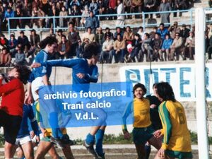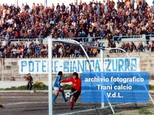 La gara tra il Trani e lo Squinzano andata di scena davanti a circa seimila spettatori è una di quelle partite che rimangono impresse nell’immaginario collettivo dei tifosi tranesi e vengono annoverate tra le prestazioni più esaltanti di cui la squadra biancazzurra è stata spesso e volentieri protagonista. Gli ingredienti, alla vigilia, c’erano tutti, ma neanche la più fervida immaginazione di uno scrittore di romanzi di narrativa avrebbe potuto, per l’appunto, immaginare quanto sarebbe successo “quel giorno” al Comunale. Trani in testa alla classifica affronta tra le mura amiche il forte Squinzano, che la segue ad una sola lunghezza di distacco e spera, quanto meno, nel pareggio per restare nella scia della capolista. Allenatore dello Squinzano, Angelo Paticchio, che torna per la prima volta a Trani da avversario, benché nelle vesti di allenatore, il quale non ha mai interrotto il legame con la nostra città avendo sposato una nostra concittadina (Rosa De Sanguine n.d.r.) . Tutti questi ingredienti hanno fatto sì che l’attesa diventasse spasmodica e tutti fossero in ansia per le sorti dell’incontro, che lasciava non poche incognite. Ed i timori della vigilia dopo appena una ventina di minuti dall’inizio della gara si mostravano tutti fondati.