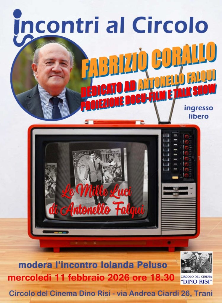 Mercoledì 11 febbraio 2026, alle ore 18.30, il Circolo del Cinema "Dino Risi" di Trani (via Andrea Ciardi, 26) ospita il giornalista e regista Fabrizio Corallo per presentare il suo docu-film "Le mille luci di Antonello Falqui".