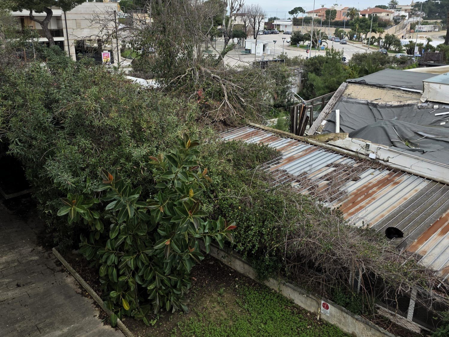 Notte di apprensione nell’area della Lampara, dove un albero è improvvisamente crollato andando a finire sul tetto del dancing, chiuso ormai dal 2018 e già interessato in passato da problemi strutturali.