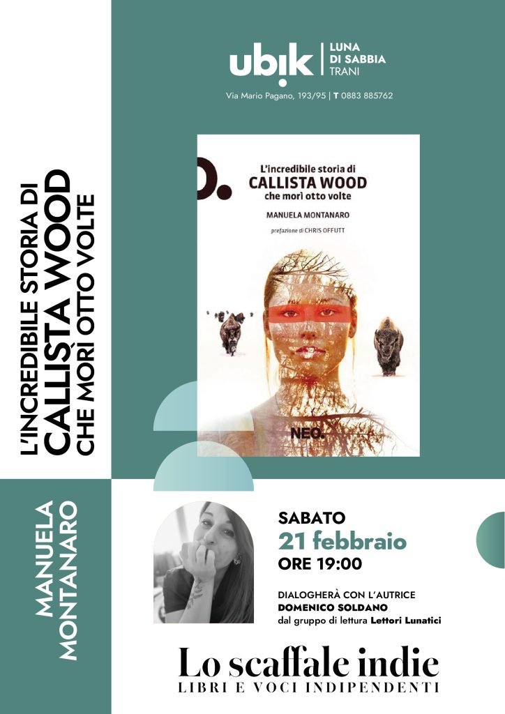 Si comincia sabato 21 febbraio ore 19:00, ospitando Manuela Montanaro, autrice del romanzo "L'incredibile storia di Callista Wood che morì otto volte" pubblicato da NEO edizioni. A condurre questi incontri, a turno, sarà sempre uno dei partecipanti del gruppo di lettura della libreria "Lettori lunatici".