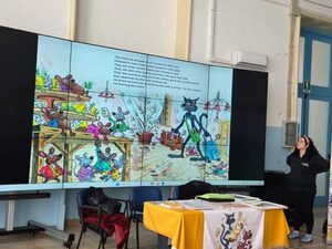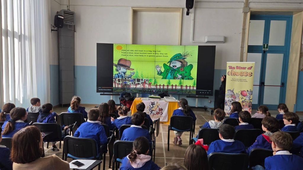 Nell’ aula Magna del 1° Circolo Didattico “De Amicis”, si è svolto un coinvolgente workshop di lettura in lingua inglese basato sul libro The River of Cheese, scritto da Amanda Jane Lowles, responsabile del Cambridge Platinum English Express di Bari e membro del National Literacy Trust.