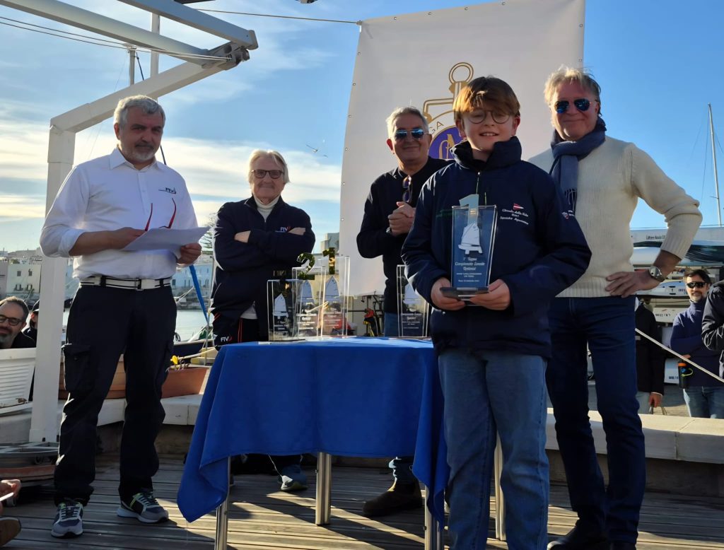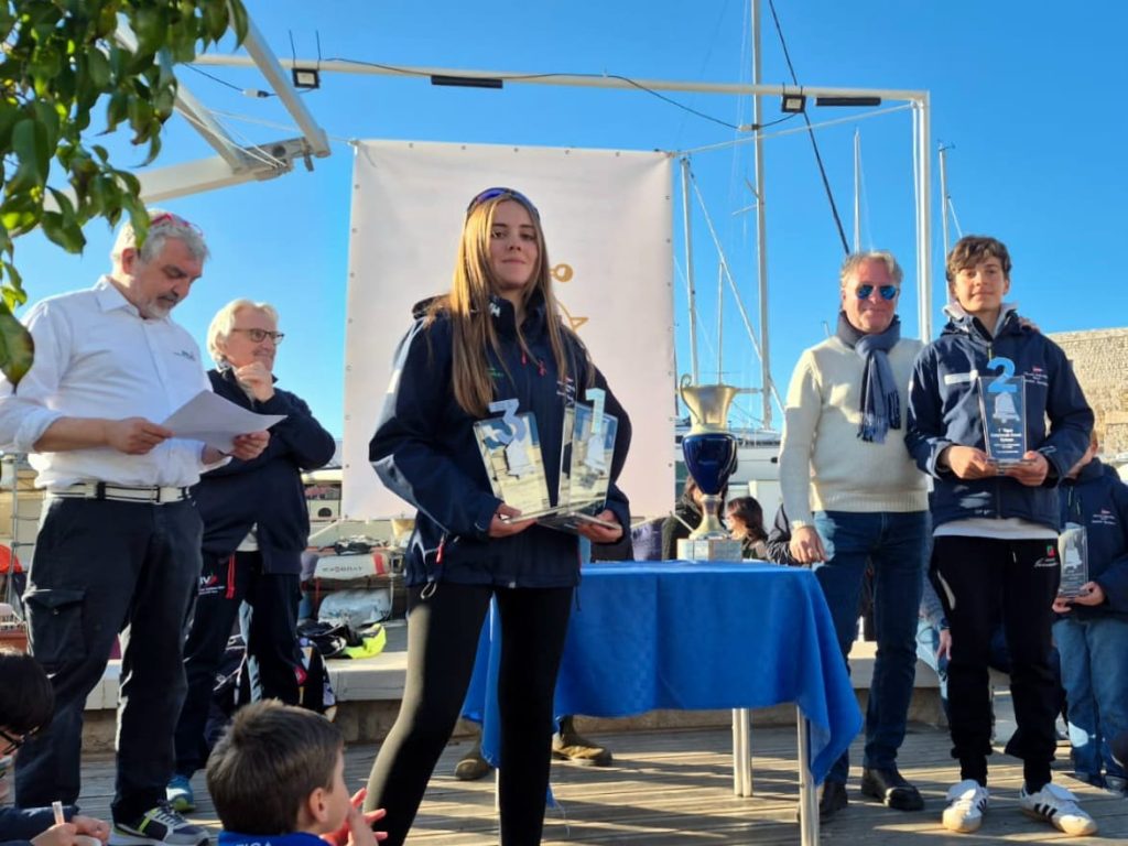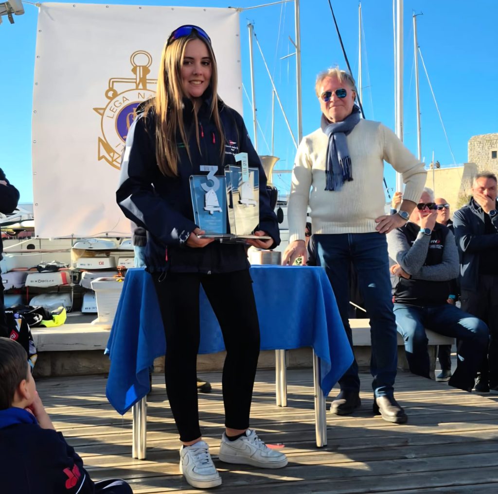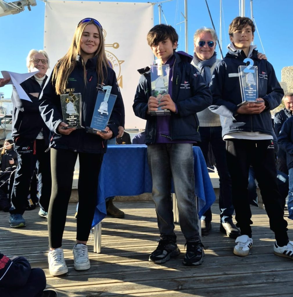 Nella divisione B, riservata ai più piccoli, il podio ha premiato la tradizione velica del Gargano e del Salento. Prima classificata Anna Gaudiano, 9 anni, del Centro Velico Gargano di Manfredonia, seguita da Niccolò Portaluri, 9 anni, del Circolo Nautico Lampara di Nardò, e dal terzo classificato Dmytro Shevchenko, 8 anni, ancora del Centro Velico Gargano.