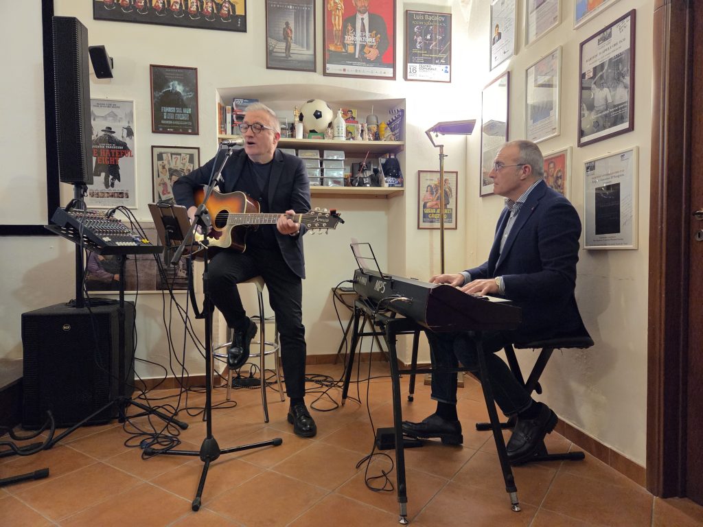 Piacevolissimie artisticamente ispirati gli intermezzi musicali di Michelangelo Bufi (voce e chitarra) e Massimo Montini (piano).