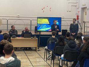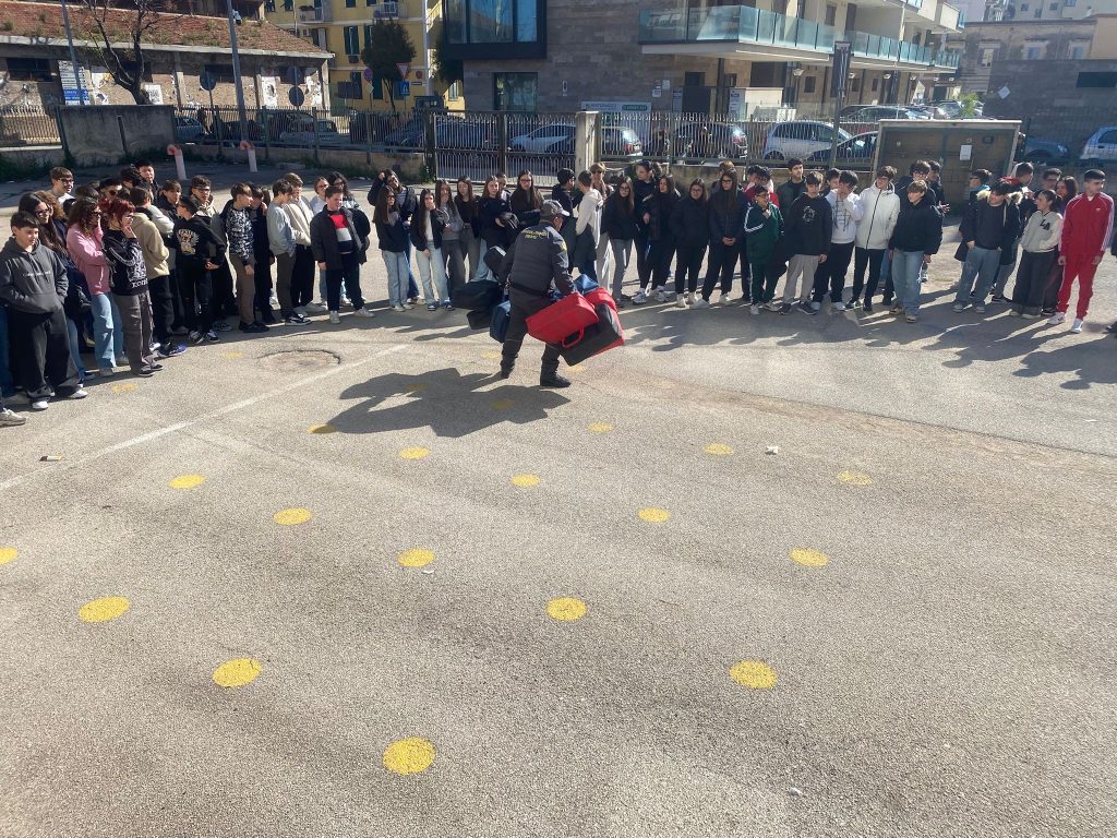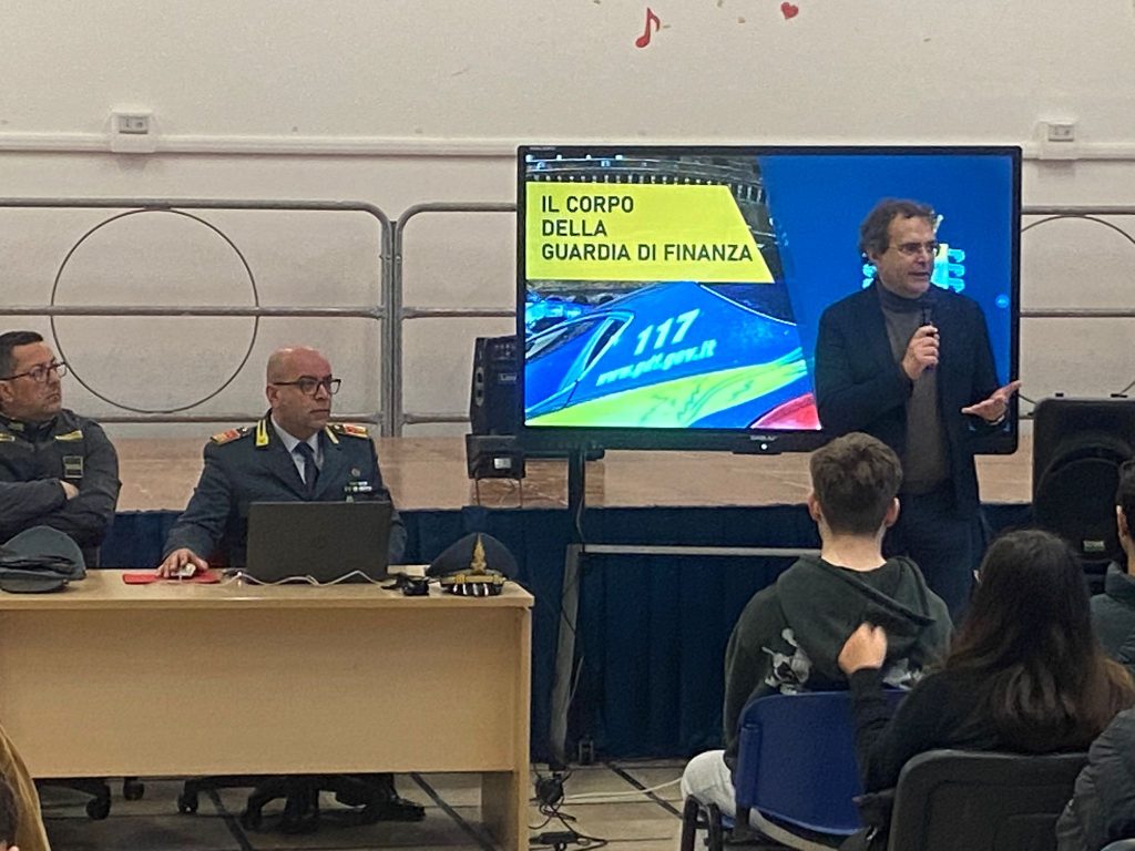 I ragazzi delle classi terze della scuola secondaria di I Grado dell’IC “Rocca -Bovio-Palumbo -D’Annunzio” hanno incontrato i rappresentanti della Guardia di Finanza, coadiuvati dal Capitano Salvatore Colella. Un appuntamento inserito nel progetto nazionale “Educazione alla Legalità “ al quale seguiranno altri incontri con le forze dell’ordine.