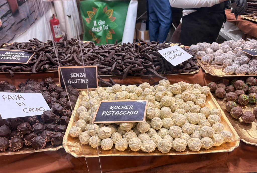 Un vero e proprio viaggio lungo l’Italia, dalla Sicilia fino al Piemonte, che propone specialità non solo legate al mondo del cioccolato, ma anche a quello della pasticceria e, più in generale, dell’arte dolciaria. Numerosi gli stand presenti, tra cui Biolzi dal 1979, Antica Biscotteria, La Perla Nera, Sfizierie di Gentile Vincenzo, Sapori di Palermo di Filippo Accetta e figli, e molti altri.