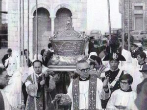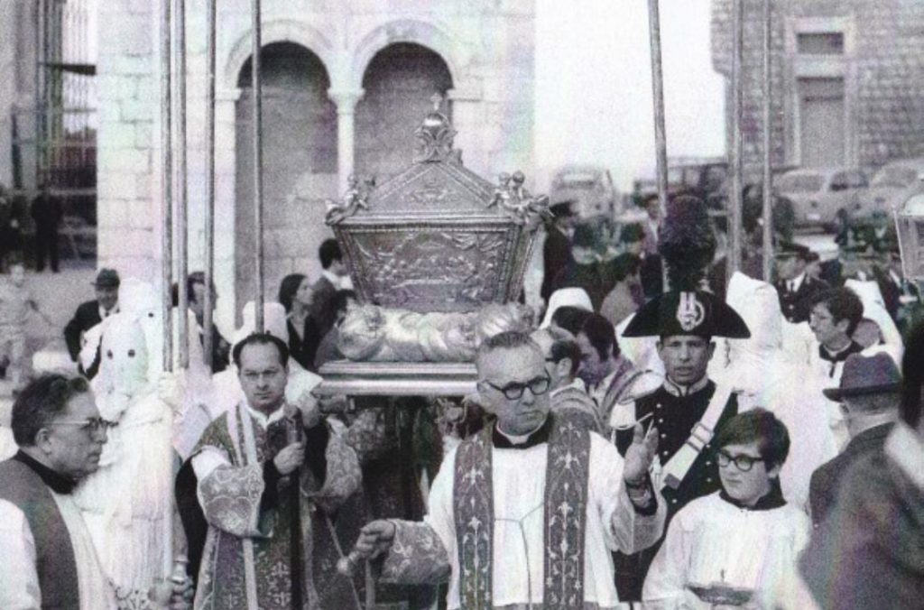 STORICO: Domenico di Martino nasce a Hoboken (U.S.A.), il 1° gennaio 1919. Appartenente ad una famiglia cattolica, dopo essersi formato nei seminari di Bisceglie e di Molfetta, riceve l’ordinazione sacerdotale per le mani dell’Arcivescovo Mons. Francesco Petronelli, il 5 luglio 1942. Ricopre diversi incarichi pastorali tra cui: collaboratore dei parroci Mons. Giovanni Carbone e di suo zio Mons. Benedetto di Martino, in sant’Agnese e Paolo (oggi s. Chiara), parroco dell’erigenda chiesa dei S. Angeli Custodi, canonico penitenziere del Capitolo Metropolitano della Cattedrale e coadiutore del parroco di S. Michele. Il 13 giugno 1970, l’Arcivescovo fra’ Reginaldo G. M. Addazi eleva Don Mimì a parroco dei Ss. Agnese e Paolo. La sua vita si contraddistingue per un’innata gentilezza e spontanea cordialità, carismi ideali che ricopre nei panni di Direttore dell’Opera Diocesana Assistenza; Assistente Diocesano Unione Donne di Azione Cattolica; Assistente del Circolo A.C.L.I. e della Comunità dei Braccianti. Coltiva sempre le sue radici familiari, impegnandosi a condurre diversi ragazzi a ricevere l’ordine sacro. A seguito di una malattia, sorretta con pazienza e spirito di sopportazione, muore circondato dai suoi familiari il 26 febbraio 1976, a soli cinquantasette anni. La città lo ha ricordato il 26 febbraio 2026 con una S. Messa in suo suffragio presso la Parrocchia di s. Chiara. Don Mimì ha impiegato tutte le sue energie per rendere migliori le anime a lui affidate, nonostante le sfaccettature di una società in continua evoluzione, permettendo di scovare e far fruttare le qualità di ognuno di loro, senza mai stancarsi e proponendosi sempre come indimenticabile buon pastore.