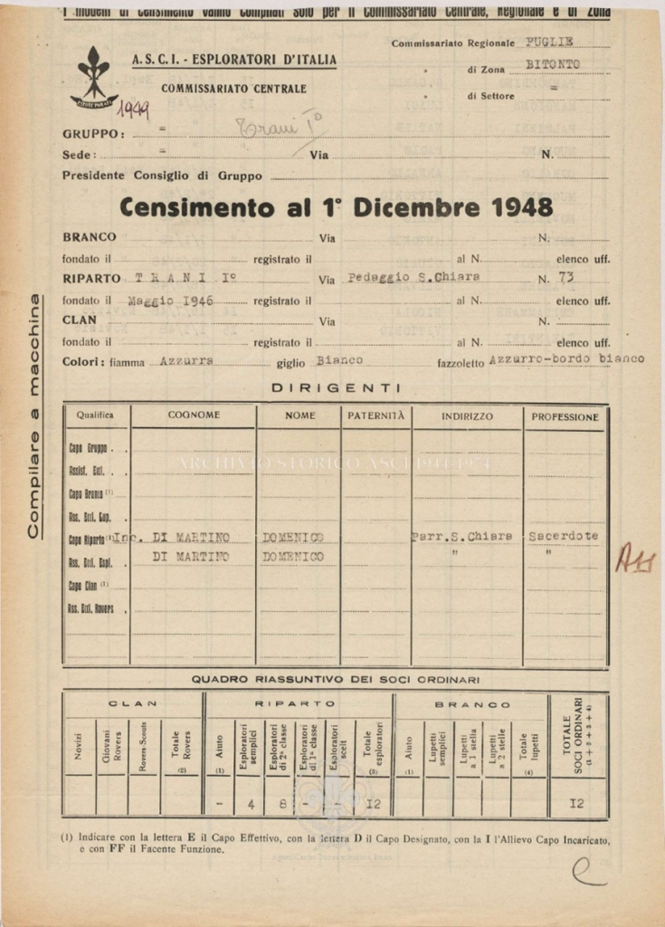 Agesci Trani 1 – Censimento ASCI (Associazione Scout Cattolici d’Italia), 1948