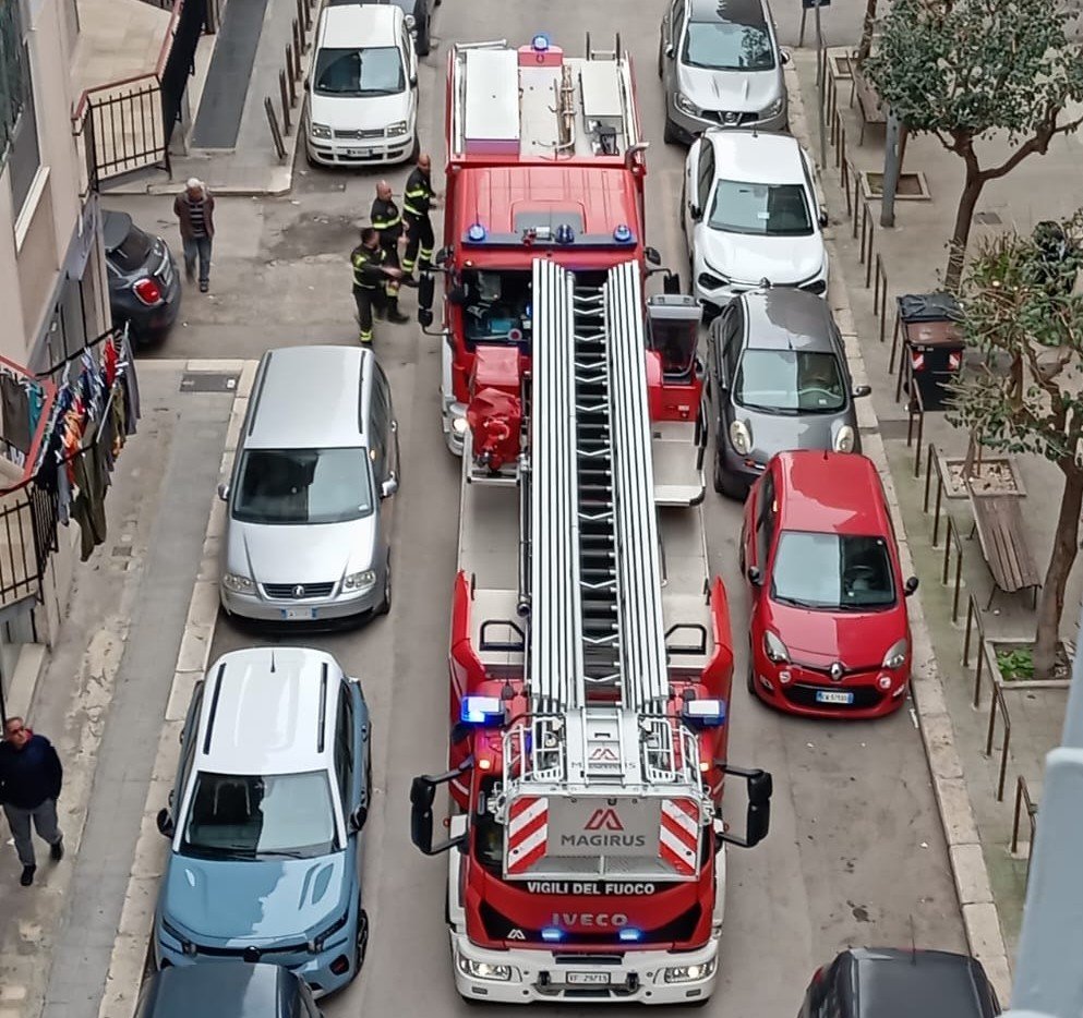 I vigili del fuoco, giunti tempestivamente sul posto da Bari, hanno valutato la situazione e deciso di penetrare nell'appartamento dall'esterno per accelerare le operazioni di salvataggio.