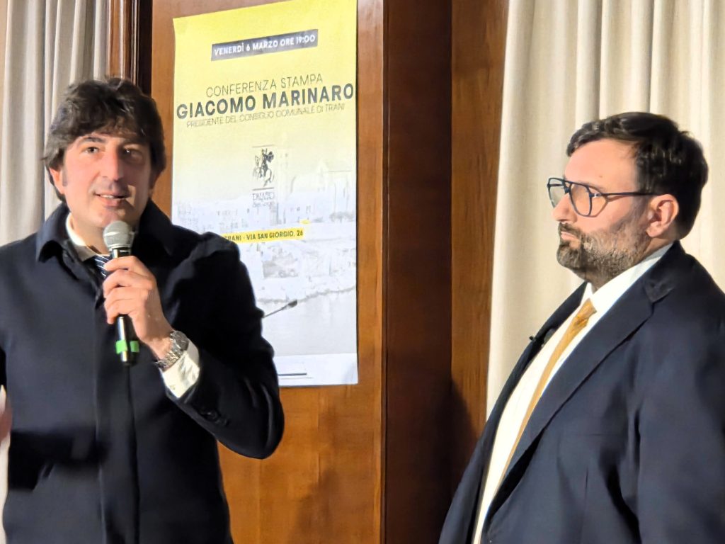 Giacomo Marinaro ha annunciato ufficialmente la sua candidatura a sindaco di Trani per le elezioni amministrative del 24 e 25 maggio. L’annuncio, atteso da giorni, è arrivato nel corso di un evento pubblico che ha riunito a Palazzo San Giorgio sostenitori, rappresentanti di liste civiche e dirigenti di partito, in una sala gremita di cittadini.