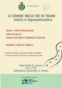 Incontro tematico su LE DONNE PER LE VIE DI TRANI. STORIA E TOPONOMASTICA