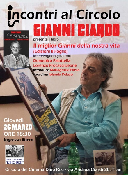 Il Circolo del Cinema "Dino Risi" apre le porte a uno dei volti più amati e poliedrici dello spettacolo pugliese. Giovedì 26 marzo, alle ore 18:30, l’associazione culturale ospiterà un incontro speciale dedicato a Gianni Ciardo, in occasione della presentazione del volume "Il miglior Gianni della nostra vita" (Edizioni Il Foglio).