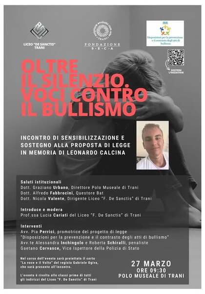 Il prossimo 27 marzo 2026, alle ore 9.30, la splendida cornice del Polo Museale Diocesano di Trani ospiterà l’evento “Oltre il silenzio: voci contro il bullismo”. L’iniziativa, rivolta alle classi prime di tutti gli indirizzi del Liceo “F. De Sanctis” di Trani, si propone come un momento cruciale di riflessione e dibattito su un tema di stringente attualità sociale.