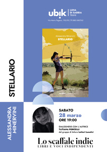 Secondo appuntamento con la rassegna "Lo scaffale indie", rivolto alle proposte di case editrici indipendenti da noi amate e scelte. Sabato 28 marzo alle ore 19:00 ospiteremo Alessandra Minervini e la sua ultima opera "Stellario, edito da Revolver edizioni I personaggi di Stellario sono donne e uomini, bambini e bambine, genitori e figli che vivono esistenze incompiute. Sempre sul punto di amare, di ridere, di lavorare, di baciarsi, di abbandonarsi, di salvarsi e di perdersi.