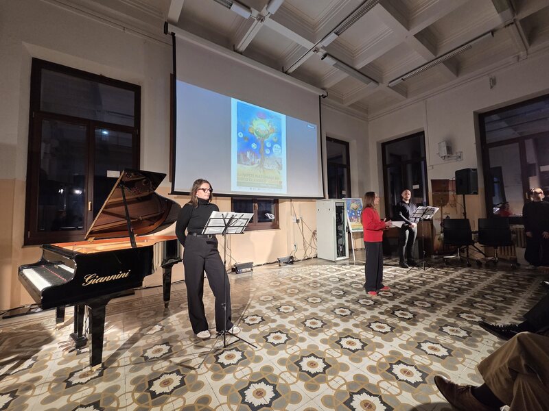A tenere le fila del programma artistico serale è stata la docente Rossella Piccareta, responsabile del progetto serale alla pari di Lucia Cariati e del Team bullismo per quello del mattino. Il percorso scelto ha avuto nell'umanità - intesa nella sua accezione più ampia - il proprio centro di gravità. «Prima di tutto siamo esseri umani», ha spiegato la professoressa, «e l'arte è forse la forma più alta di umanità». Di qui la scelta di coinvolgere i ragazzi in una serie di attività che hanno toccato la poesia, la recitazione e la musica. Ospite della serata il pianista jazz Mirko Signorile, artista che Piccareta ha definito persona di «grande spessore artistico e di grande profondità», capace non soltanto di suonare ma di dialogare con i ragazzi «del mondo, della vita, del sentire».