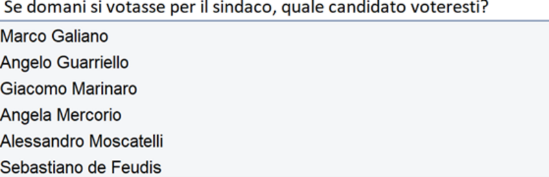 Per questi motivi, i risultati non hanno valore statistico né predittivo dell’esito delle elezioni e non sono rappresentativi dell’insieme degli elettori del Comune di Trani. Essi fotografano unicamente le opinioni delle persone che hanno scelto di partecipare al questionario nel periodo indicato.