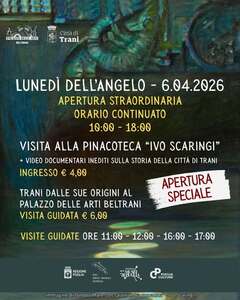 L’iniziativa offre ai visitatori la possibilità di trascorrere un’intera giornata all’insegna dell’arte e della storia, con accesso anche alla Pinacoteca “Ivo Scaringi”. In programma visite guidate dal titolo “Trani, dalle sue origini al Palazzo delle Arti Beltrani”, previste alle ore 11:00, 12:00, 16:00 e 17:00.