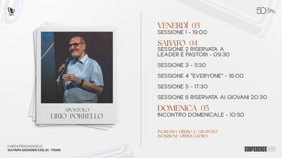 Ospite dell’evento sarà l’apostolo Lirio Porrello, guida di uno dei più grandi movimenti evangelici in Italia.