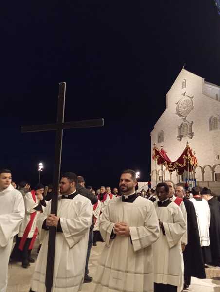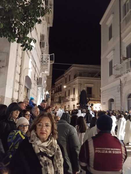 Alle prime ore del Venerdì santo è accaduto un evento meno piacevole: l'annullamento della secolare processione di penitenza col simulacro della Vergine Addolorata. Organizzato dall'Arciconfraternita omonima, cui vi partecipa anche il Terz'ordine dei Servi di Maria, il momento è stato impedito dalle dure condizioni meteorologiche che hanno indotto il Consiglio a non vivere o spostare in altro orario il rito che vede la visita ai repositori Eucaristici, lungo le vie del paese. Così, alcuno ha paventato l'idea di slittare ad altro orario lo svolgimento, magari nella mattinata del Venerdì, come accaduto nelle città limitrofe. Si è comunque concessa la possibilità di pregare in S.Teresa attraverso una veglia che si è protratta sino a metà mattinata, conclusa da un momento di preghiera tenuto dall'Arcivescovo.