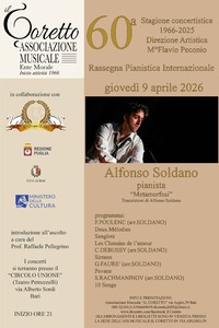 Giovedì 9 aprile 2026, alle ore 21, il palco del Circolo Unione, all’interno del Teatro Petruzzelli, ospiterà il pianista tranese Alfonso Soldano con il concerto “Metamorfosi”, un progetto artistico originale basato su trascrizioni curate dallo stesso interprete.