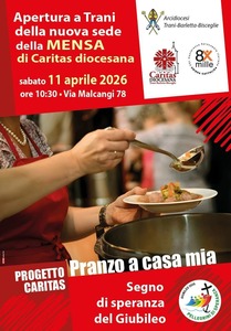 Sabato 11 aprile 2026, a Trani, in via Malcangi 78, alle 10.30, l’Arcivescovo mons. Leonardo D’Ascenzo inaugurerà la nuova sede della mensa della Caritas diocesana di Trani-Barletta-Bisceglie.