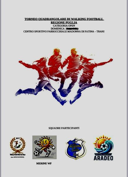 Si terrà domani, domenica 12 aprile 2026, con inizio alle ore 10:00, presso il Centro Sportivo Parrocchiale Madonna di Fatima di Trani, il “Quadrangolare di Walking Football - Categoria Open”, un evento dedicato alla promozione di una disciplina ancora poco conosciuta nel Sud Italia ma in forte crescita nel resto del Paese.