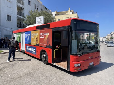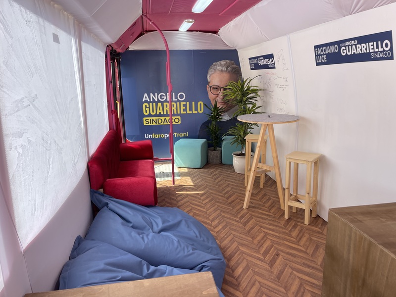È un bus in movimento a segnare l’avvio concreto della campagna elettorale nei quartieri di Angelo Guarriello, candidato sindaco del centrodestra a Trani. Un percorso che parte da un luogo fisico, ma che sceglie subito di uscire dalle stanze per entrare nella città reale.