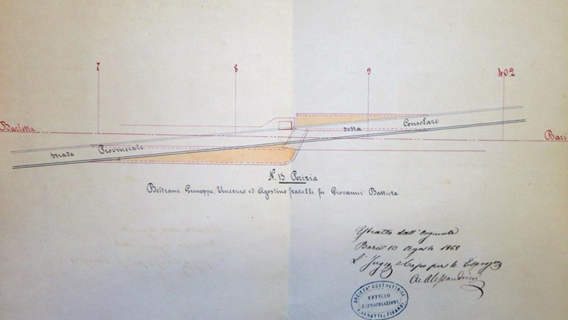 “…18 aprile 1889: il Ministero autorizza il Comune di Trani ad ampliare il Piazzale della stazione ferroviaria…””