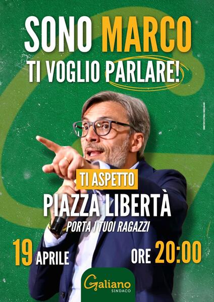Il percorso di partecipazione culminerà domenica 19 aprile in Piazza Libertà, alle 20, dove Marco Galiano terrà un comizio per condividere le linee guida del progetto collettivo, evidenziando come il coinvolgimento dei cittadini sia ormai il cardine di una visione politica e sociale rinnovata per il futuro del territorio.