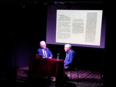 La serata si è aperta con i saluti del Teatro Mimesis e con l’introduzione affidata a Franco Caffarella, insieme agli interventi di Isim e Francesco Squatriti, che hanno subito delineato il valore storico e culturale del “Tranesiere” come strumento di racconto e coscienza cittadina. A seguire, spazio alle origini del quindicinale, con la proiezione di materiali d’epoca legati a Piracci e la lettura dell’editoriale del primo numero da parte di Squatriti, accompagnata da immagini tratte da «Trani è la mia città» di Mario Azzella. La conversazione tra Caffarella e il dott. Mario Schiralli ha poi ricostruito la nascita e lo spirito del giornale.