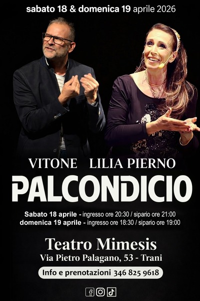Il Teatro Mimesis ospita PALCONDICIO, un viaggio teatrale che attraversa linguaggi, contraddizioni e paradossi del nostro tempo. Vitone e Lilia Pierno costruiscono un dialogo serrato, ironico e profondamente umano, capace di alternare leggerezza e riflessione.