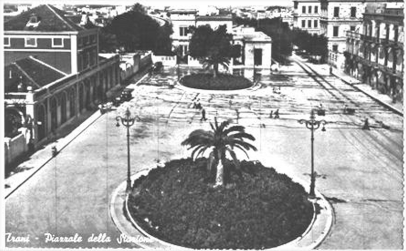 STORIA: la nascita della piazza è strettamente legata all’arrivo della ferrovia a Trani, nel 1864, quando si rende necessario creare uno spazio antistante la stazione capace di accogliere viaggiatori, merci e mezzi di trasporto. Tra il 1887 e il 1895 il Comune avvia una complessa operazione urbanistica fatta di espropri, acquisti e sistemazioni dell’area, coinvolgendo numerosi proprietari locali e la Società per le Strade Ferrate Meridionali. Il primo progetto, redatto dall’assistente tecnico Ignazio Vania, prevede una piazza semicircolare con aiuola centrale, allineata con via Cavour. Negli anni successivi, ulteriori interventi portano alla regolarizzazione dell’intero perimetro e all’allineamento delle principali arterie, trasformando progressivamente uno spazio periferico in un vero nodo urbano. La piazza viene ufficialmente intitolata il 20 settembre 1895, in occasione del venticinquesimo anniversario della Breccia di Porta Pia, su proposta del sindaco Adolfo Quercia. Nel corso del Novecento, la piazza subisce numerose trasformazioni: dalla presenza di un’unica aiuola centrale si passa, con l’aumento del traffico e delle esigenze di mobilità, a una configurazione più ampia e funzionale, con parcheggi e nuove sistemazioni viarie. L’area diventa così uno dei principali biglietti da visita della città, accompagnando l’evoluzione del trasporto ferroviario e urbano. Proprio in questo spazio si consuma anche uno dei momenti più solenni della storia cittadina contemporanea: dopo la scampata fucilazione dei 50 tranesi del 18 settembre 1943, il successivo 7 ottobre Piazza XX Settembre ospita la cerimonia ufficiale di conferimento delle medaglie al valor militare. Alla presenza delle autorità civili e religiose e di una folla numerosa, il Re Vittorio Emanuele III in persona premia coloro che si sono distinti per coraggio nel tentativo di salvare vite umane, trasformando la piazza, per un giorno, in luogo di memoria e riconoscenza collettiva.