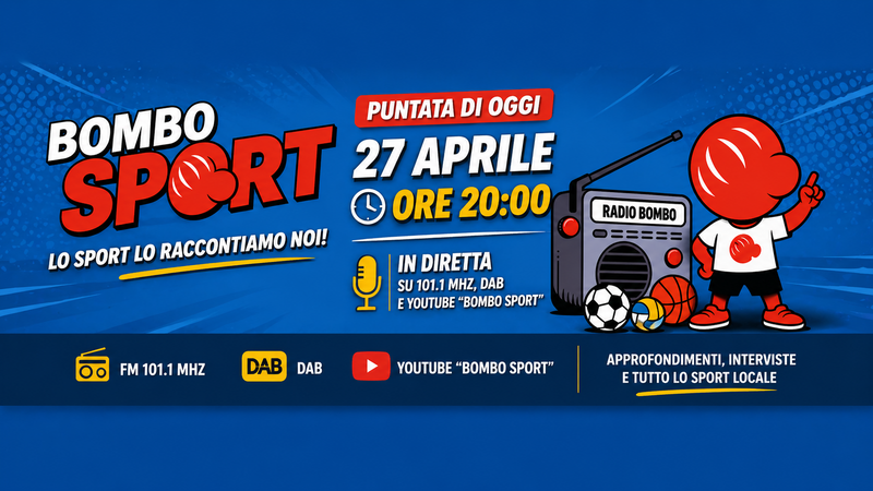 La redazione sportiva di Radio Bombo e "Il Giornale di Trani" vi consiglia di non perdere assolutamente l'appuntamento di stasera con il consueto appuntamento del lunedì con il Bombosport live. A partire dalle ore 20 circa in diretta in FM sui 101.1 Mhz, su DAB e con diretta Youtube sulla pagina "Bombo sport", analizzeremo l'intero weekend sportivo tranese e non solo. Come sempre lo faremo con le voci dei diretti protagonisti, attraverso interviste, telefonate in diretta e ospiti in studio.
