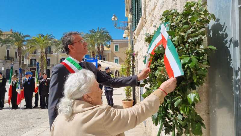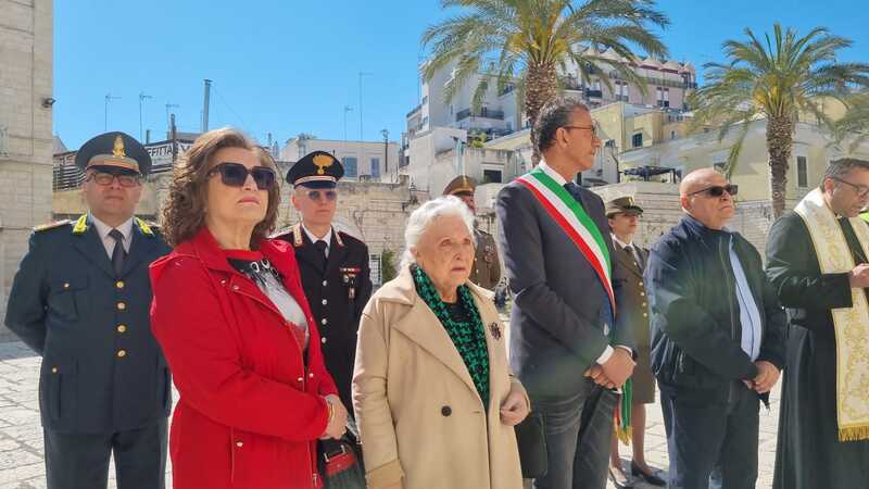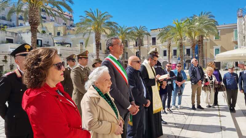 Trani, 27 aprile 2026. «Basterebbe poco per cambiare tutti», ha detto Domenica Sonatore Cosentino, 86 anni, che ne aveva solo tre quando perse l'intera famiglia sotto le bombe. L'altra mattina, in piazza Teatro, sotto un sole splendido che ha fatto da cornice ideale alla solenne ricorrenza, la città si è fermata di nuovo davanti ai nomi di chi non tornò, deponendo una corona d'alloro alla targa che ricorda le vittime dell'incursione aerea angloamericana del 27 aprile 1943.